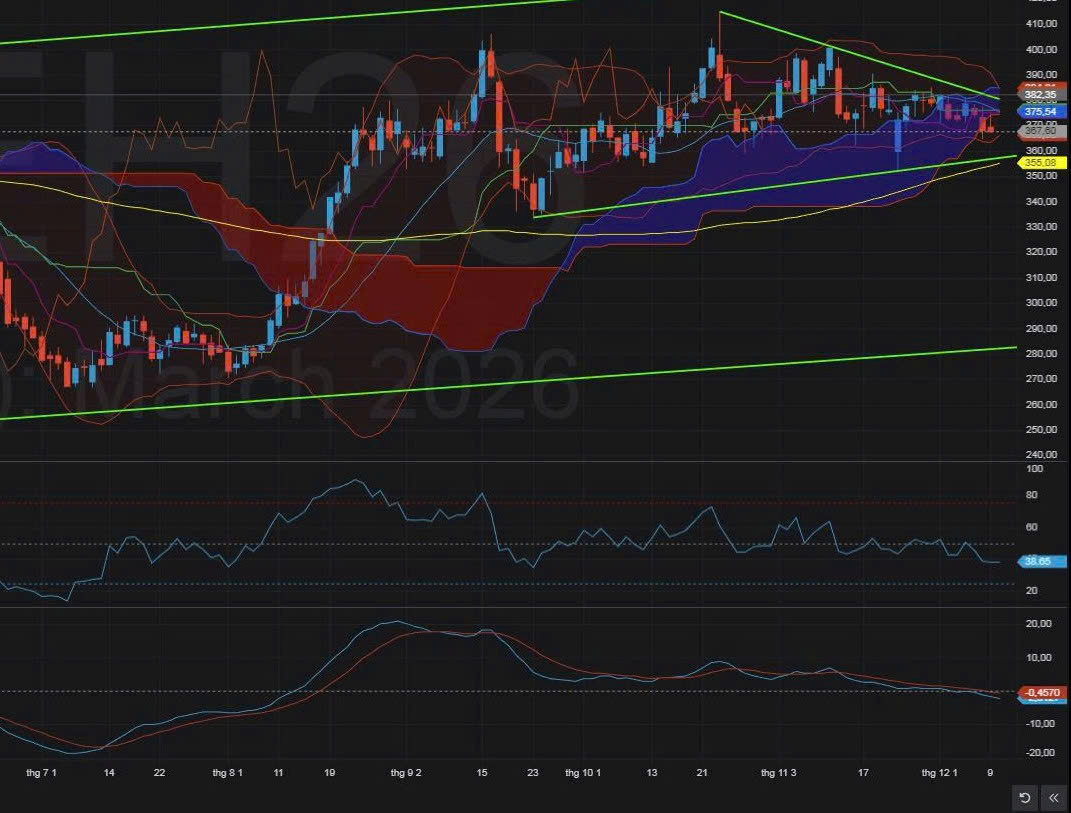 - Giá nằm sát mép dưới tam giác (vùng ~372–376).