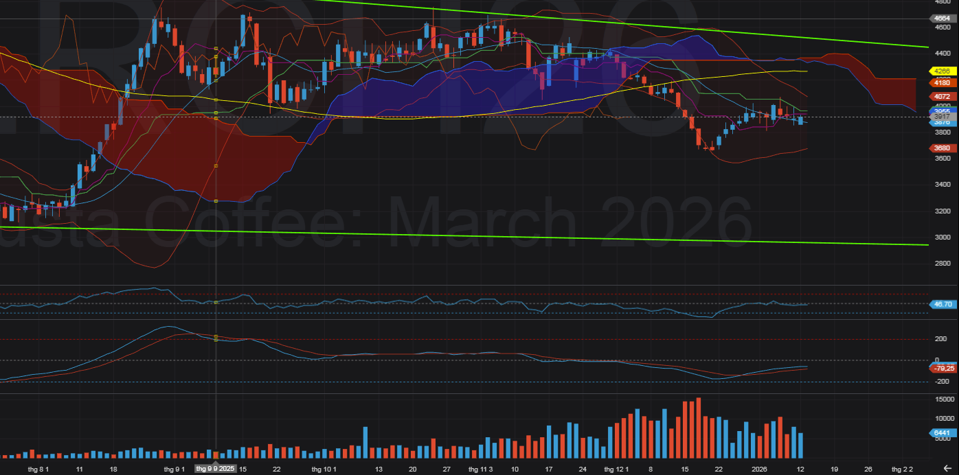 - Dòng tiền đầu cơ có xu hướng giảm vị thế mua ròng đối với arabica so với nửa cuối năm 2025.