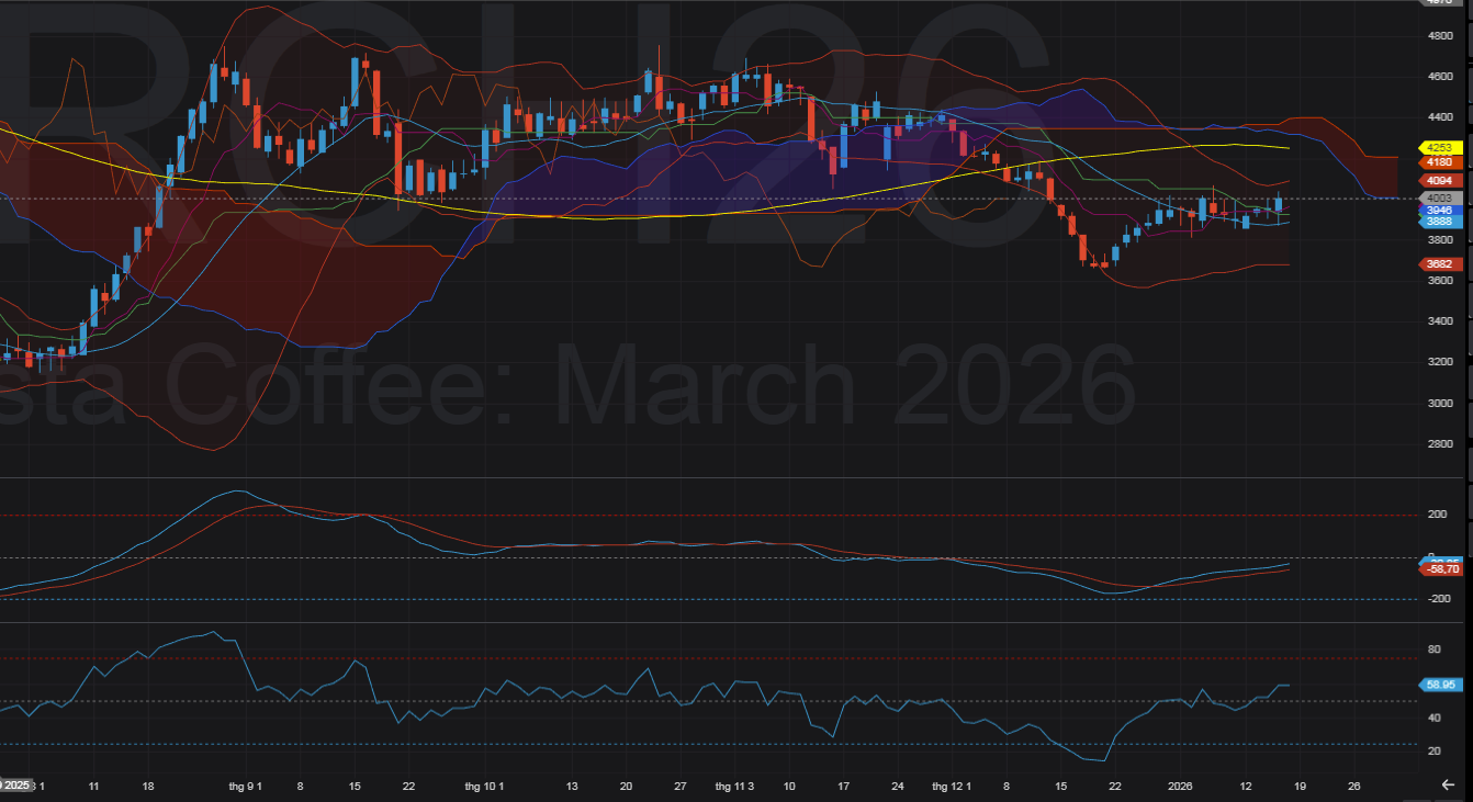 Arabica đang ở trạng thái phục hồi kỹ thuật sau nhịp điều chỉnh, chưa quay lại uptrend mạnh.