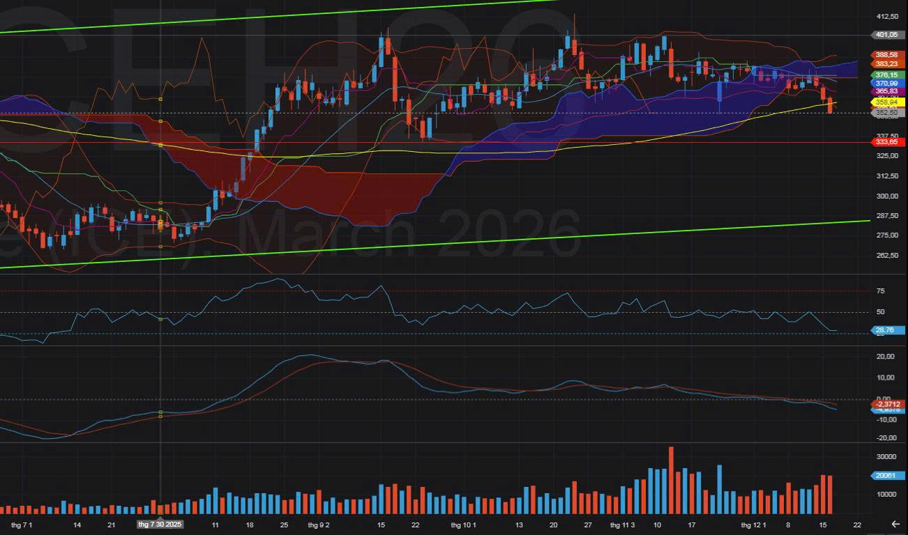- Đang trượt về vùng hỗ trợ trung hạn 350–355