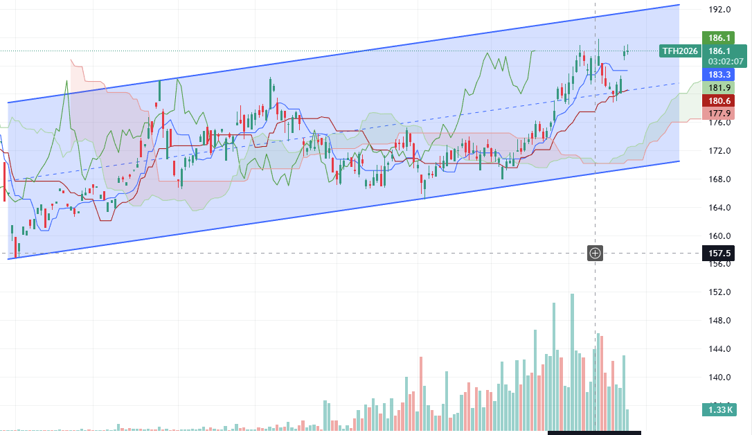 - Giá dao động 182 – 190 trong kênh tăng.