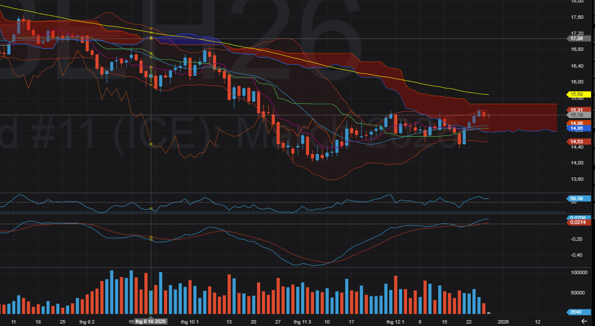 - Không có báo cáo lớn (USDA/ISO) trong tuần → thị trường chủ yếu giao dịch theo kỹ thuật.
