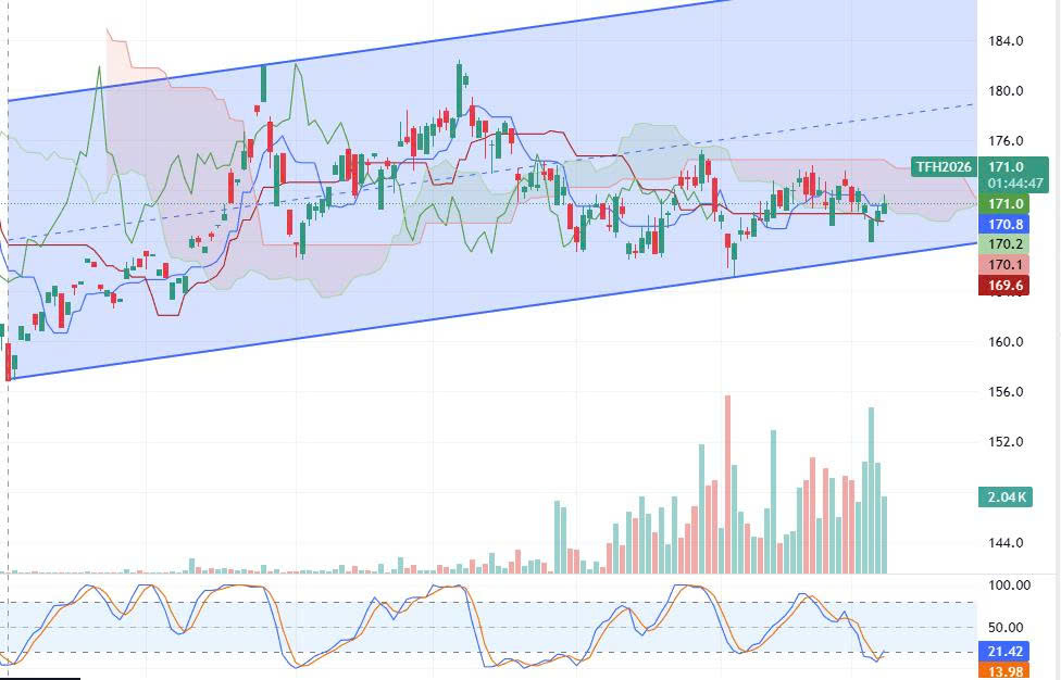 - Tenkan (170.8) ↔ Kijun (170.1) đang hướng ngang → chưa có xu hướng mạnh.