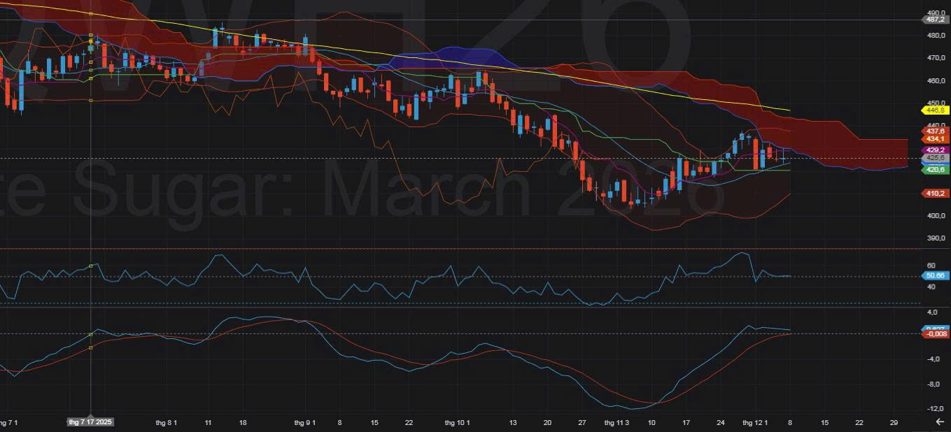 - Ấn Độ mùa vụ tốt hơn, dù khả năng xuất khẩu vẫn bị hạn chế, nhưng lượng đường trong nước đang tăng → áp lực giảm giá trung hạn.