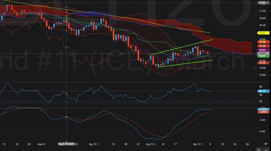 - Đường giữa BB tại ~15.00 đang đóng vai trò kháng cự.