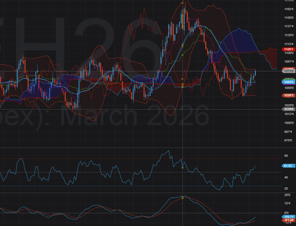 - Giá nằm trên mây Ichimoku, mây phía trước dốc lên → cấu trúc tăng rõ.