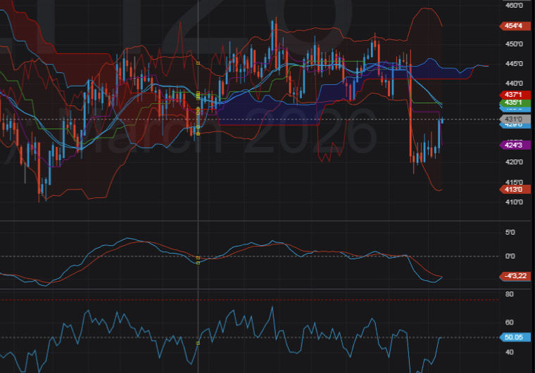- Giá dưới mây Ichimoku, mây phía trước phẳng → thị trường tích lũy yếu.